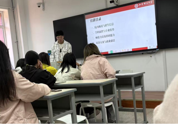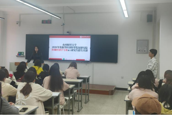 为精准对接地理系学子考研需求,帮助大家明晰报考方向、匹配优质专业,10月13日下午,山西财经大学资源型经济转型发展研究院与双碳产业研究院联合来我系,开展考研招生专场宣讲会。大三、大四备考学子代表积极参会,现场围绕学科实力、考试要点、就业前景等核心问题与校方嘉宾深入交流,氛围热烈。此次主动联动高水平高校搭建考研信息桥梁,正是我系积极推进就业升学服务工作的生动体现。