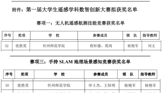 2025年10月11日至12日,由侯艳军、刘文两位老师带队,3名学生组成的忻州师范学院地理系代表队,赴武汉大学参加“第一届大学生遥感学科数智创新大赛”。